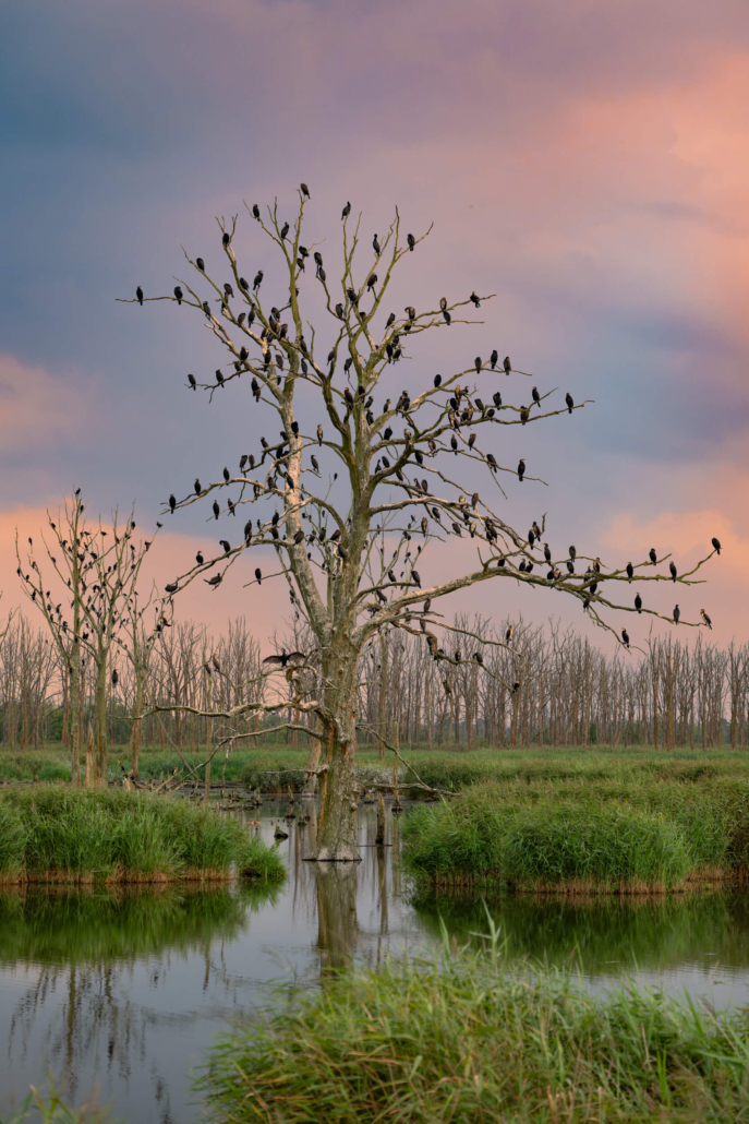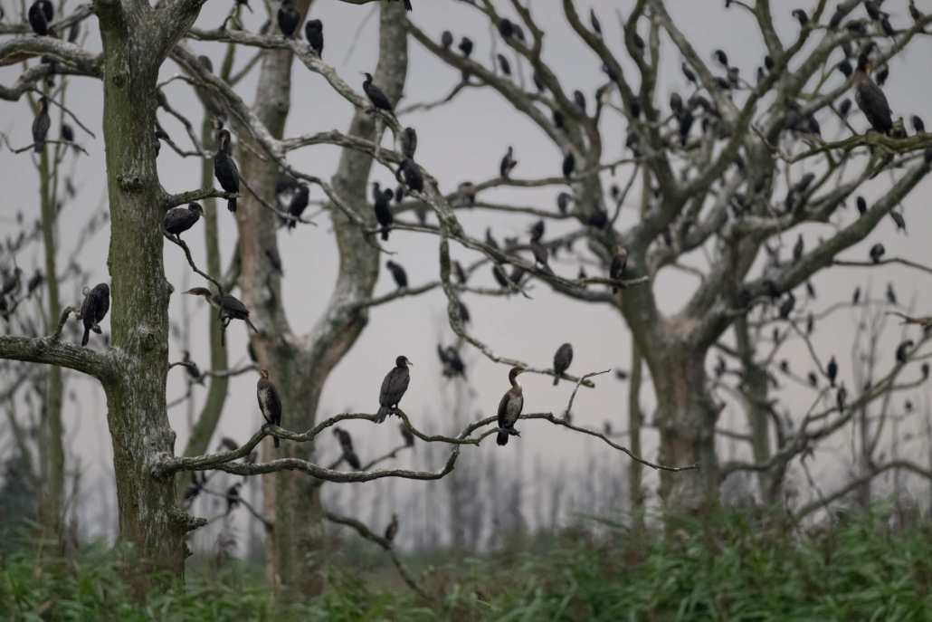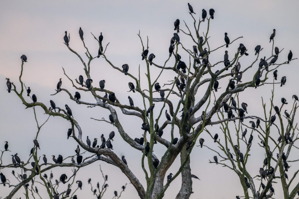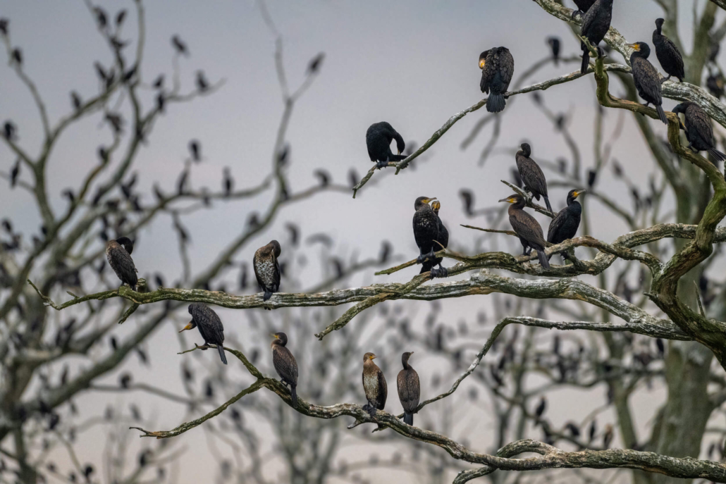 The great cormorant – Phalacrocorax carbo, known as the great black cormorant across the Northern Hemisphere, the black cormorant in Australia, the large cormorant in India and the black shag further south in New Zealand, is a widespread member of the cormorant family of seabirds. The genus name is Latinised Ancient Greek from φαλακρός (phalakros, “bald”) and κόραξ (korax, “raven”), and carbo is Latin for charcoal.